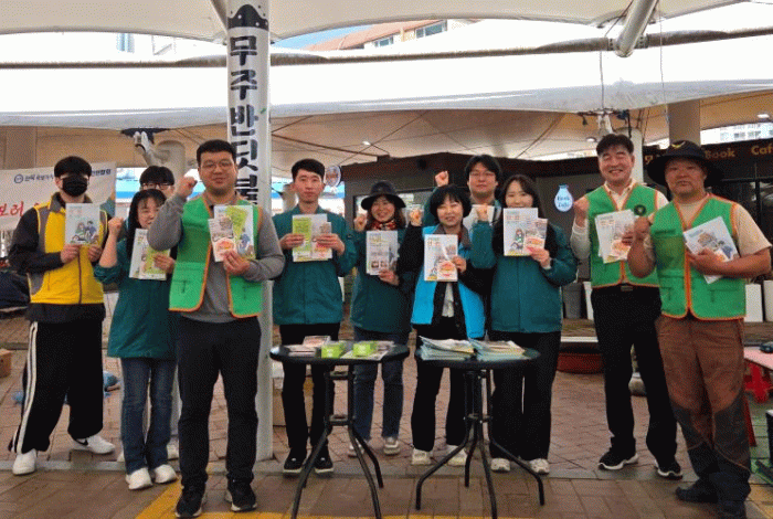 무주군청 안전재난 분야 공무원들과 자율방재단, 안전보안관 등 주민 20여 명이 주축이 돼서 가두 캠페인을 펼쳤다.
