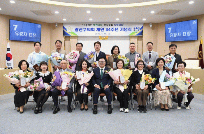 이날 행사에는 김명수 의장을 비롯해 지난 34년간 광산구의회를 이끌어 온 역대 의원들과 박병규 광산구청장, 김관호 광산소방서장, 길강묵 광주출입국외국인사무소장, 강병수 광산세무서장, 최지현·박필순·박수기·이귀순·정무창 광주시의원 등 100여 명이 참석해 자리를 빛냈다.