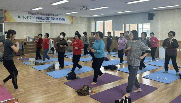 5월부터는 'AI·IoT 어르신 건강관리 운동교실'을 운영한다. 근감소증 예방과 낙상 방지, 만성질환 예방을 위한 운동 프로그램을 제공한다. 오는 5월 7일부터 6월 25일까지 매주 수요일 진행되는 이 프로그램은 요가, 유산소 운동, 근력운동, 라인댄스 등 다양한 운동으로 구성되며 사전·사후 BMI 검사와 개인 맞춤 운동 지도가 병행된다. 8자 근력밴드 운동 보조기구도 함께 제공해 체계적인 운동 환경을 조성한다.