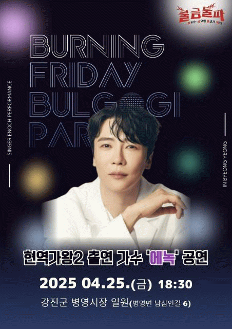 강진원 강진군수는 “불금불파 행사장에 인기가수 에녹을 초청한 이유는 강진 불금불파를 관외 거주하는 사람들에게 알려 군민의 지역 자긍심을 고취하고 생활인구를 유입하기 위함이다”며 “많은 관광객들이 불금불파 행사장에서 느낀 뜨거운 분위기를 집으로 돌아가 홍보 해주는 효과도 기대할 수 있다. 이 분들이 지속적으로 찾아오는 생활인구가 돼 강진의 매력을 한층 더 느꼈으면 좋겠다”고 말했다.