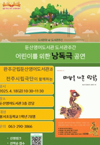 문의 사항은 완주군립 둔산영어도서관으로 하면 된다.
