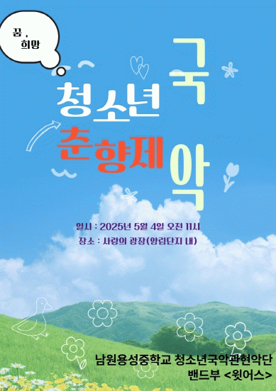 이번 축제에서 눈여겨볼 만한 공연이 있다. 오는 5월 4일 오전 11시, 사랑의 광장 야외공연장에서 남원용성중 청소년국악관현악단과 밴드부 ‘윗어스(With us)’가 준비한 합동 공연으로 색다른 무대가 펼쳐진다.