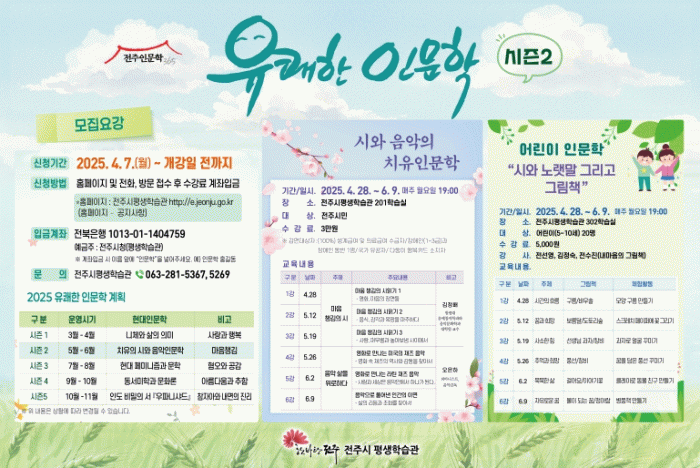 유쾌한 인문학은 전주시민이면 누구나 참여할 수 있으며, 수강료는 3만 원(어린이 인문학=5000원)이다. 참여를 원하는 시민은 전주시평생학습관 누리집 또는 전화로 신청하면 된다.
