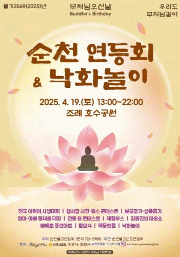 순천불교연합회가 주최하는 순천 연등회에서는 오후 1시부터 전국 어린이 사생대회, 보물찾기, 전통등 콘테스트, 풍선아트 등 아이들과 함께하는 다채로운 프로그램이 펼쳐진다.