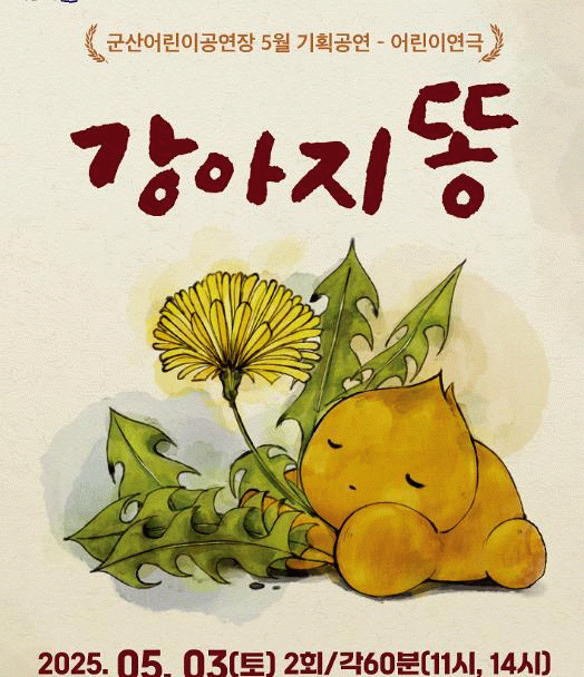 심종완 예술의전당관리과장은 “이번 어린이날을 맞아 군산의 어린이들과 가족들이 강아지 똥이 전하는 울림 있는 이야기를 통해 따뜻한 감성과 생명의 소중함을 느낄 수 있기를 바란다.”라고 전했다.