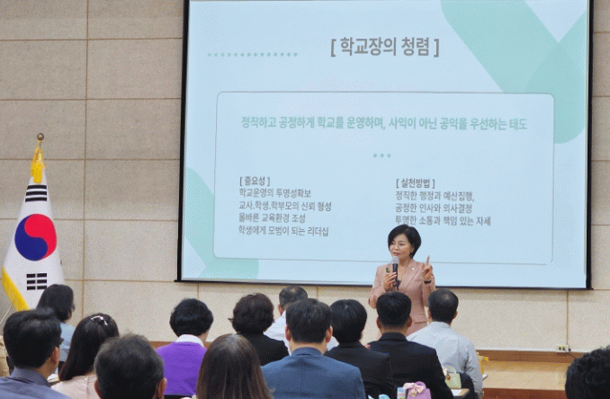 이번 연수는 학교 경영 능력, 교육 리더십, 공직자로서의 청렴 의식 강화를 중심으로 진행됐다.