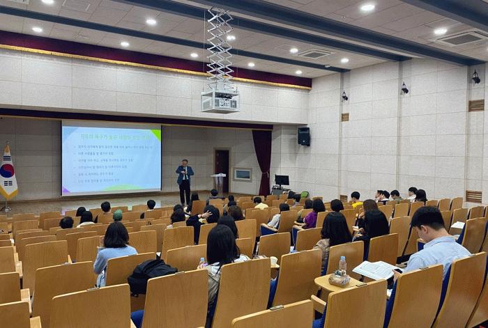 연수에서는 교육전문기업 수업디자인연구소 김현섭 강사가 수업코칭과 수업나눔 강의를 했다. 김 강사는 수업코칭의 개념과 필요성, 욕구를 통한 수업자의 내면 이해(욕구코칭), 질문이 있는 나눔 등을 안내했다.