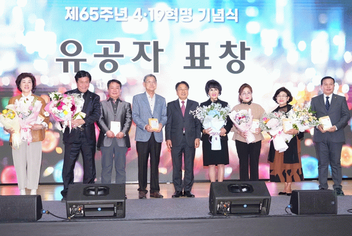 기념식에서 4·19혁명 정신선양 유공자로 선정된 고상숙, 김성대, 김태균, 김태영, 민은식, 이은재, 정은숙, 최창호씨에게 표창패가 수여됐다.