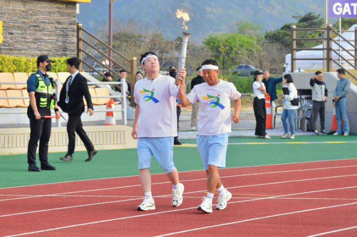개회식의 정점은 스타디움 ‘성화 점화’였다. 김다빈 바둑선수, 온은신 씨 다자녀 가족, 김미수 조정선수, 재경‧재광 향우회장에 이어 최종 주자인 장성 출신 유튜버 감스트(본명 김인직)와 김용율 전남도청 펜싱팀 감독의 손에 성화가 전달됐다. 감스트와 김 감독은 무대 중앙에 설치된 성화대에 함께 불을 붙이며 200만 도민 화합과 성공 체전을 기원했다.