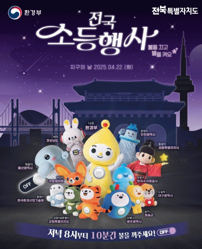 우선, 22일 오후 8시부터 10분간, 전북도청을 포함한 14개 시군 청사 건물의 소등행사가 일제히 진행된다. 이번 행사는 지구의 소중함을 되새기고 탄소중립 실천의지를 다지는 상징적 행사로, 도민들도 자발적으로 가정에서 소등에 동참할 수 있다.
