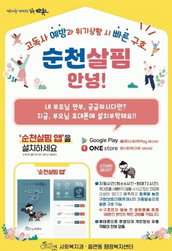 또한, 스마트폰을 활용한 ‘순천살핌 안녕 앱’과 가전제품 사용 여부를 감지해 응급 상황을 파악하는‘스마트 돌봄 플러그’도 운영 중이다.