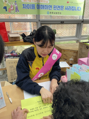 먼저 첫날인 이날 오전에는 전주시보건소에서 시민들의 장애에 대한 이해를 높여 장애에 대한 인식이 개선될 수 있도록 △장애 인식개선 퀴즈 풀기 △점자 스티커 만들기 등의 체험 프로그램이 진행됐다.