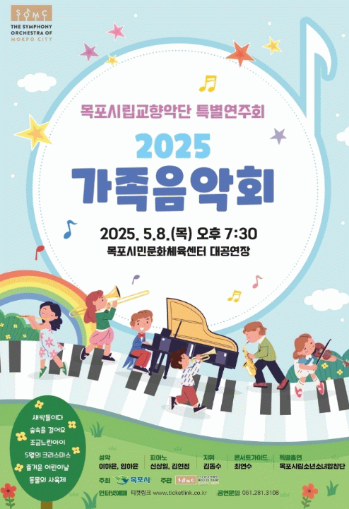 1부 무대에서는 ‘뻐꾸기 왈츠’를 시작으로, ‘새싹들이다’, ‘숲속을 걸어요’, ‘조금 느린 아이’, ‘5월의 크리스마스’ 등 총 5곡의 동요가 목포시립소년소녀합창단과 목포시향의 협연으로 선보인다.