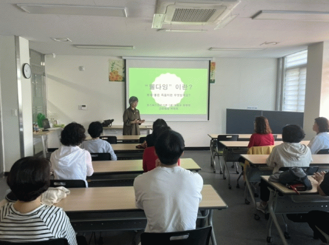 이날 (재)원불교병원 박영희 간호팀장을 강사로 초빙해, 존엄한 죽음에 대한 성찰과 연명의료결정제도의 이해 등을 주제로 교육이 이뤄졌다.