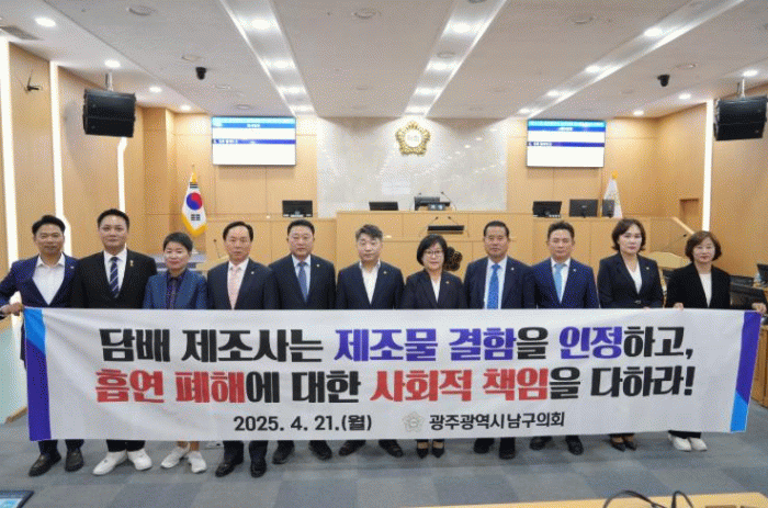 남구의회 의원들은 “담배 제조사들은 제조물 결함을 인정하고, 국민의 건강을 보호하기 위한 책임을 성실히 이행할 것”과 “정부는 담배로 인한 건강 피해에 대한 국가적 대응을 강화할 것”을 촉구했다.