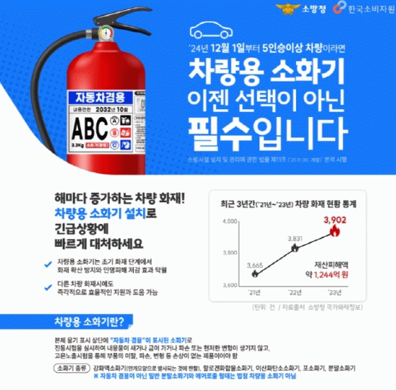 여수소방서장은“화재 초기 상황에서 소화기 1대는 소방차 1대만큼의 위력을 가진다”라며 “자신뿐만 아니라 우리 모두의 안전을 위해 차량용 소화기를 꼭 비치해 주시기를 당부드린다”라고 전했다.