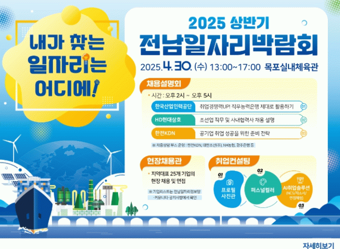 김준철 전남도 일자리경제과장은 “이번 일자리박람회는 다양한 분야의 기업이 참여하는 만큼 많은 구직자가 실질적인 취업 기회를 얻고 뜻깊은 성과를 얻길 바란다”고 말했다.