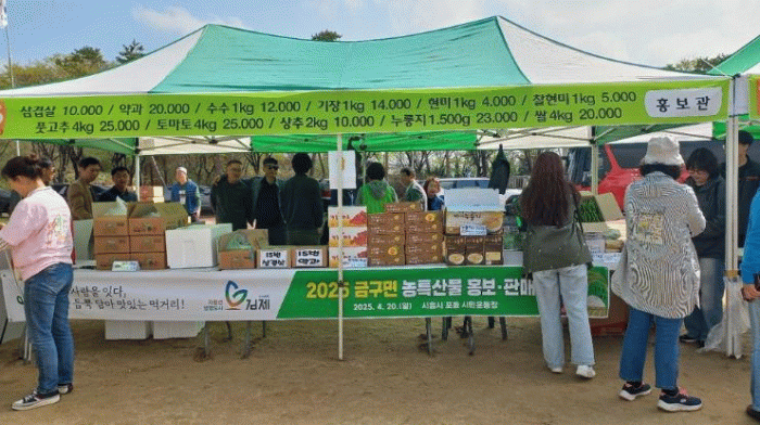 이승곤 금구면장은 “이번 행사를 위해 정성을 듬뿍 담아 신선하고 맛있는 금구 농산물들로 준비했다”며 “이번 기회를 통해 김제시 농산물의 우수성을 알릴 수 있게 되어 기쁘고 김제시 농가 소득 증대에도 기여될 수 있기를 바란다”고 밝혔다.