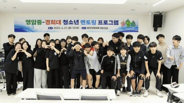 영암중학생 15명과 경희대학생 14명이 21일 영암군 영암읍 달빛청춘마루에서 열린 ‘청소년 진로 멘토링 프로그램’에서 멘티와 멘토로 만났다.
