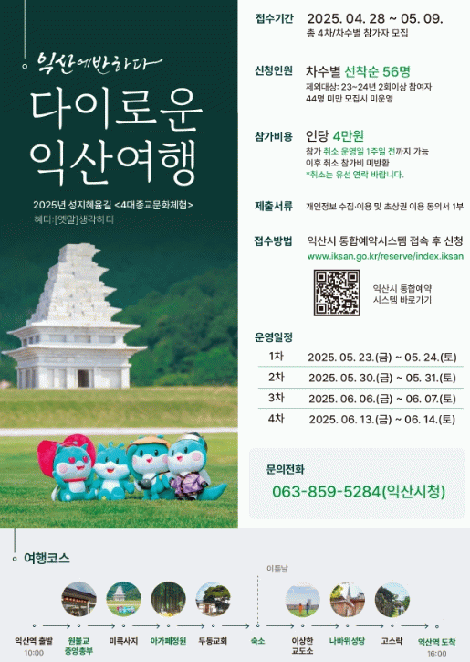 시 관계자는 "다이로운 익산여행은 단순한 관광을 넘어 삶의 쉼표가 되는 여행으로 많은 관심을 얻고 있다"며 "올해도 참여자들이 편안하게 여행을 즐길 수 있도록 준비에 최선을 다하겠다"고 전했다.