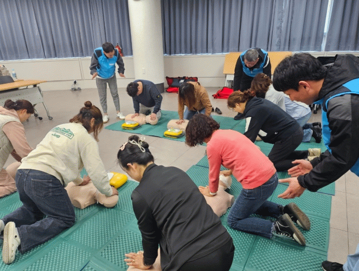 교육 내용은 ▲화재 시 대피요령 ▲응급환자 발생 시 행동요령 ▲심정지 환자 반응 확인 ▲마네킹을 이용한 심폐소생술 실습 ▲하임리히법 ▲자동심장충격기(AED) 사용법 등 심정지 환자 발생 시 신속하게 대처할 수 있는 이론과 실습 과정으로 구성됐다.