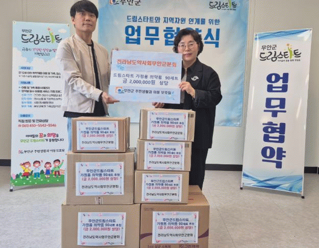 무안군약사회는 200만원 상당의 습윤밴드, 상처치료제, 드레싱스틱, 일회용 밴드, 면봉 등으로 구성된 가정용 응급약품 꾸러미를 기탁했으며, 드림스타트는 5월부터 대상 세대에 전달할 계획이다.