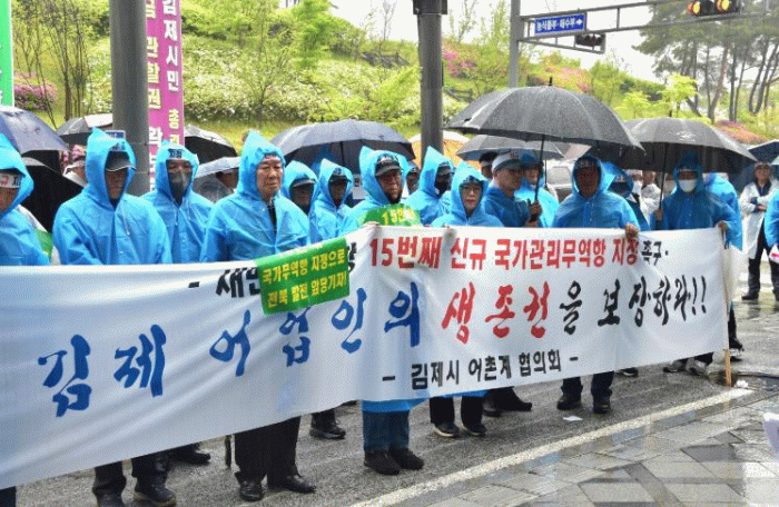 이들은 22일 정부세종청사 해양수산부 정문 앞에서 김제시 어촌계 회원 및 주민 등 200여명이 참석한 가운데 김제 어민들을 위한 범정부 차원의 대책 마련과 새만금신항의 신규 국가관리무역항 지정을 촉구하는 김제 어업인 결의대회를 가졌다.