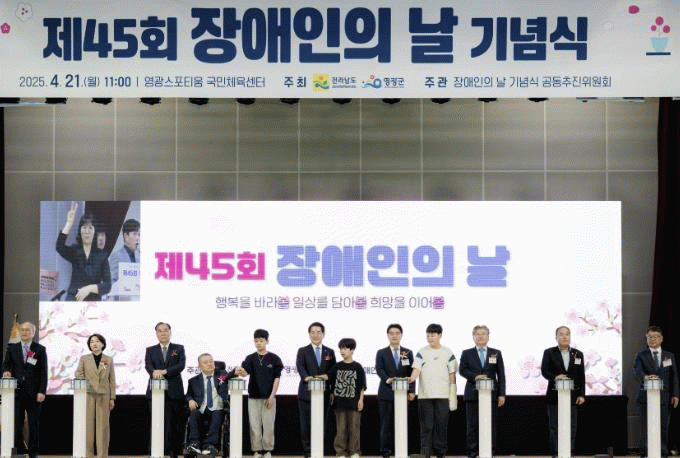 장애인에 대한 주민들의 이해 증진과 재활의식 고취를 위해 전라남도와 영광군이 공동 주관하고, 제45회 전라남도 장애인의 날 기념식 공동추진위원회(지체․농아․시각)가 주최한 이날 행사에는 김영록 전라남도지사, 장세일 영광군수, 이개호 국회의원, 서미화 국회의원, 김태균 전라남도의회 의장, 김강헌 영광군의회 의장을 비롯한 장애인 관련 유관기관 관계자들이 참석해 자리를 빛냈다.