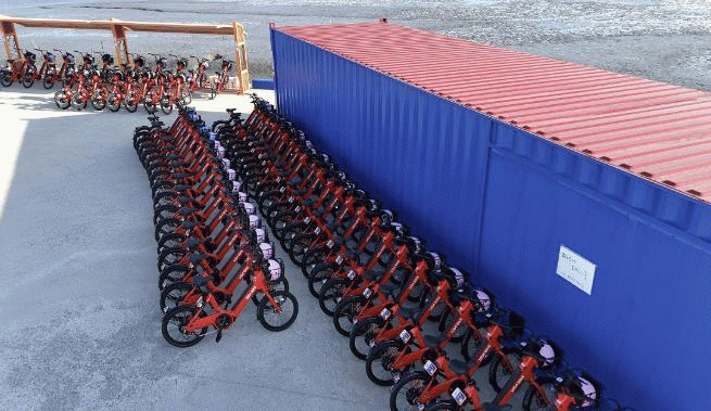 공유자전거는 전기자전거로 장거리 도보가 불편한 분들을 위해 도입됐다. 공유자전거 이용은 스마트폰 애플리케이션을 통해 대여 및 반납이 가능하다. 무인 방식으로 운영되며 방문객은 물론 주민들도 이용이 가능하다.