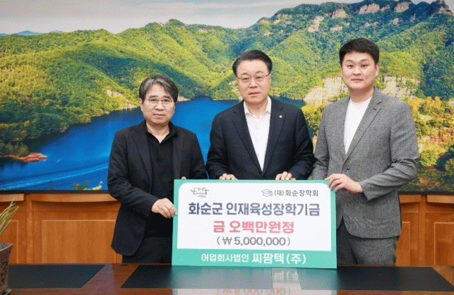지역 내 지속 가능한 수산업 모델을 실현하고 있는 씨팜텍(주)은 체험형 스마트 양식장 운영 등 다양한 사업을 통해 화순의 내수면 양식 발전에 기여하고 있으며, 이번 장학금 기탁은 지역사회와 함께 성장해 온 기업으로서 미래 인재들이 꿈을 펼칠 수 있도록 돕는 나눔의 일환으로 이루어졌다.