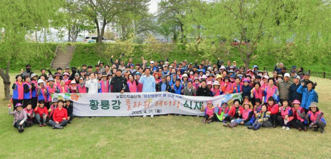 농촌지도자회, 생활개선회, 4-H(에이치)연합회, 귀농귀촌인협의회 4개 단체 회원 200여 명은 제2황룡교부터 문화대교까지 이어지는 17개 구간에 메리골드, 데이지 등 6만여 주를 식재했다.