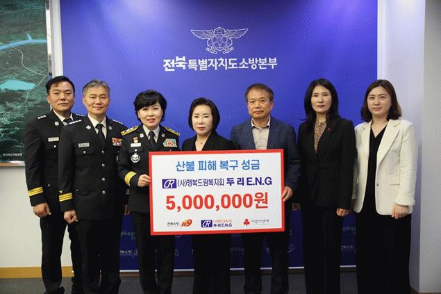 이오숙 소방본부장은 “재난 현장 회복을 위해 따뜻한 손길을 내민 두리E.N.G의 진심에 깊이 감사드린다”며 “전달된 성금은 피해 주민들에게 꼭 필요한 곳에 신속하고 투명하게 사용하겠다”고 말했다.