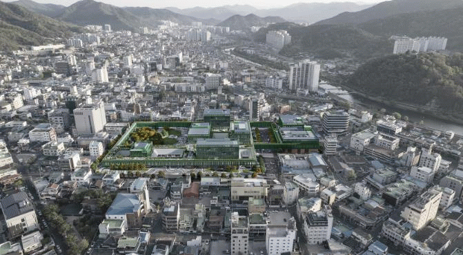 특히 중앙공원과 6곳의 중정을 통해 도심 속 쉼터이자 문화 교류의 장을 제공한다.