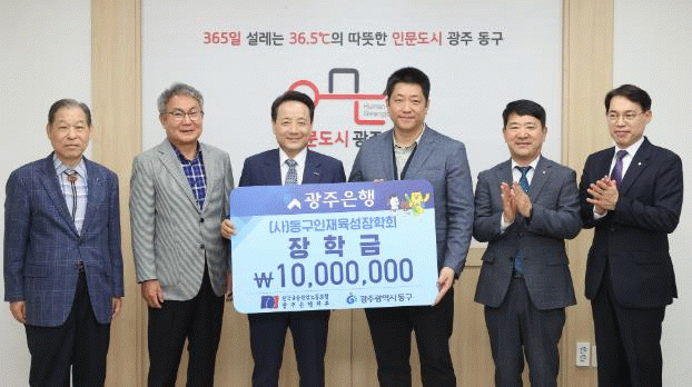 한편 광주은행노조는 지난 2014년과 2015년 각 500만 원씩을 동구 인재육성장학회에 전달한 데 이어 올해 1천만 원을 기탁하며 지역 인재 육성에 힘을 보태고 있다.