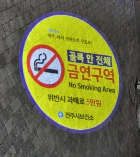이와 관련 전주지역 금연구역은 총 2만2960곳으로, 이 중 △전주한옥마을 △부성골목길 △유개버스정류소 및 택시승차대 10m 이내 △어린이공원 등은 ‘전주시 금연환경 조성 및 간접흡연 피해 방지 조례’에서 지정한 금연구역이다.