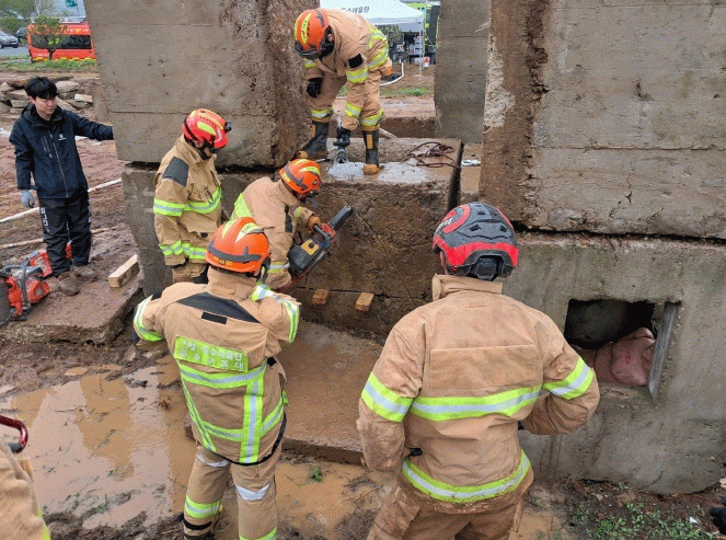 특히 최근 사회적 이슈로 부각된 싱크홀 사고 대응 훈련이 집중적으로 이뤄졌다. 구조대원들은 갑작스러운 지반 침하로 발생한 싱크홀 내 고립자 구조를 가정해 수직 진입과 수평 접근 방식의 복합 구조기법을 숙달했으며, 좁고 불안정한 지하 공간에서의 인명 탐색, 다중 위험 요소 분석, 구조장비 활용, 대원 간 정보 공유 체계 등 실전에서 즉시 활용할 수 있는 기술과 전략을 집중적으로 훈련했다.