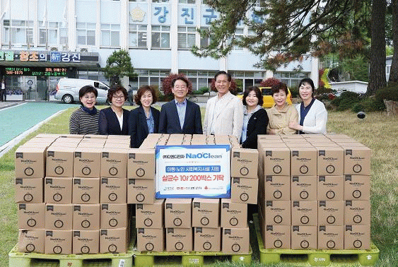 기탁된 물품은 나오크린 살균소독수 10ℓ짜리 200박스로, 관내 아동 및 노인을 포함한 26개 사회복지시설에 골고루 전달될 예정이다.