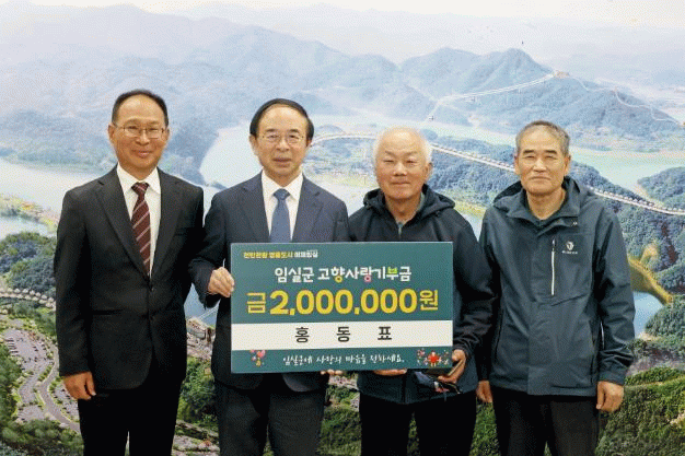 홍동표 씨는“항상 고향 임실을 마음에 두고 있었다”며“지역 발전에 작게나마 도움이 됐으면 하는 바람으로 기부하게 됐다”고 전했다.