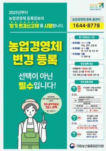 하지만 바쁜 영농활동과 의무에 대한 인식 부족 등으로 농업인이 제때 변경등록을 하지 않고 있어 지원 사업에서 배제되는 등의 불이익을 받을 우려가 있다.