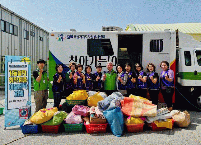 이번 행사는 익산 북부권에 거주하는 차상위 및 기초생활수급 노인 15명을 대상으로, 대형 겨울 이불을 수거해 세탁·건조한 후 다시 가정으로 전달하는 방식으로 진행됐다.