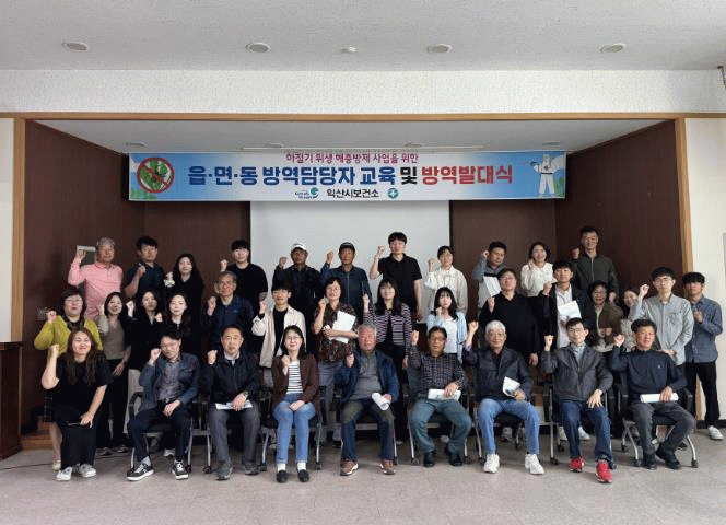 익산시는 24일 보건소에서 '위생해충 방역 교육 및 발대식'을 개최했다. 이날 보건소 방역기동반을 비롯해 29개 읍면동의 방역 담당자·근로자 등 60여 명이 참석했다.
