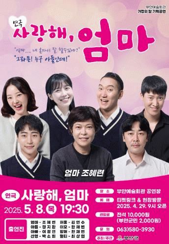 군 관계자는 "가정의 달을 맞아 이번 공연을 준비했다. 많은 관객들이 부안예술회관을 찾아 가족의 사랑을 되새기는 시간을 갖길 바란다"고 말했다.