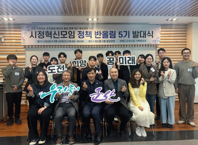 ‘정책 반올림’은 임용 5년 차 이하 8~9급 공무원들이 자율적으로 참여해, 실무 현장의 문제의식을 바탕으로 참신한 정책을 제안하고, 공직 내부의 소통과 존중 문화를 조성하고자 운영되는 군산시의 시정 혁신 모임이다.