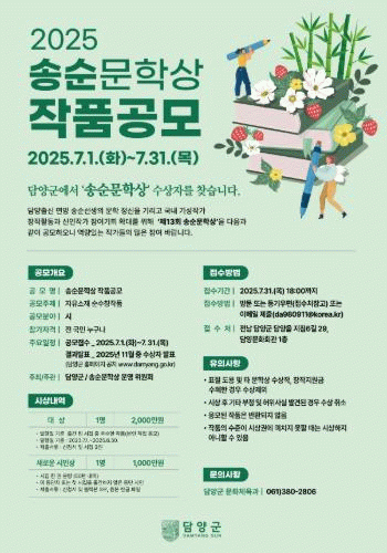 담양군은 이번 공모를 통해 문학적 가치를 높이는 동시에 지역 문화의 깊이를 더하고, 담양을 대표하는 문학 브랜드로 발전시키고자 한다.