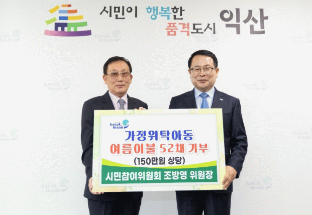 정헌율 익산시장은 "민간의 따뜻한 관심과 손길이 아동 복지 향상에 큰 힘이 된다"며 "이번 나눔은 가정위탁 아동들에게 실질적인 도움이 될 뿐 아니라, 지역사회에 긍정적인 울림을 주는 귀한 사례"라고 밝혔다.