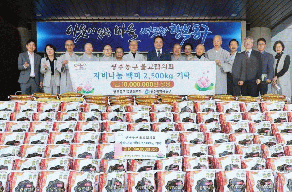 이번 기부 전달식은 동구 소재 다수의 사찰이 공동 참여한 나눔 활동으로, 각 사찰 주지스님과 쌀을 후원받게 될 사회복지시설 및 단체 등 6개소 관계자들이 참여해 자리를 빛냈다.