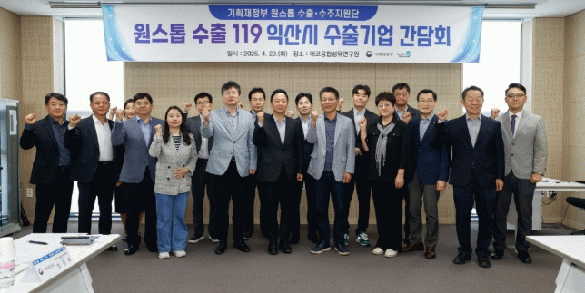 익산시는 기획재정부 원스톱 수출·수주지원단과 함께 29일 ECO융합섬유연구원 대회의실에서 '원스톱 수출 119, 익산시 수출기업 간담회'를 개최했다.