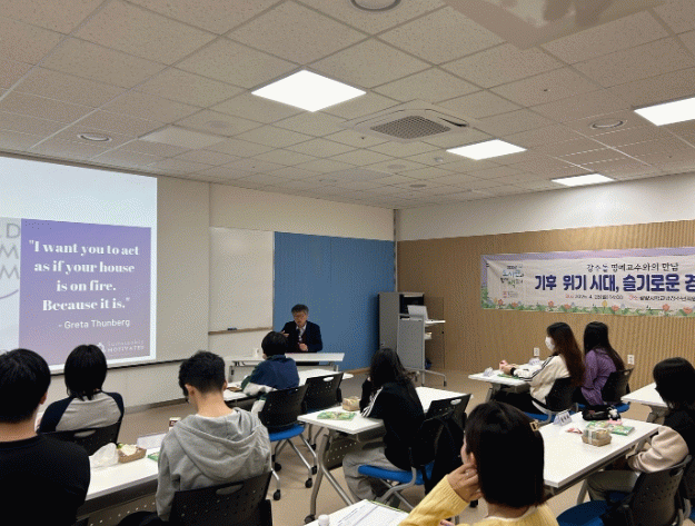 강수돌 명예교수는 강연을 통해 나부터 시작하고 더불어 실천하는 ‘살림살이 경제’의 관점에서 우리 사회 경제 이야기를 풀어냈다.