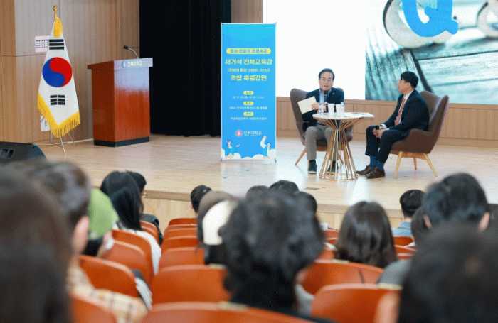 이날 서 교육감은 전북대 방문은 전북대가 주최하는 명사․전문가 특강 요청으로 이뤄졌다.
