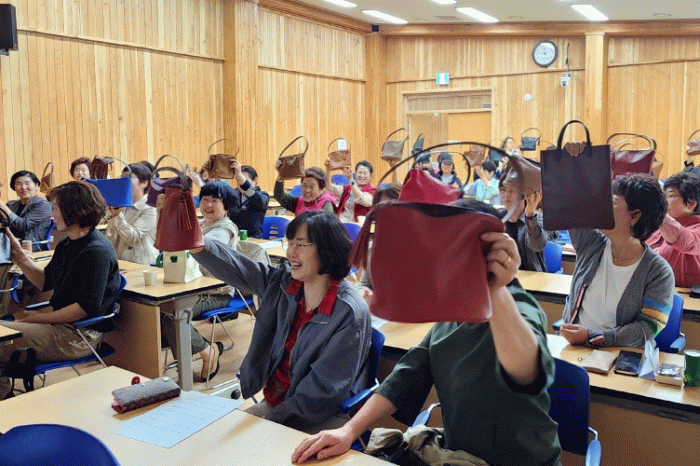 2부에서는 안다연 다연가죽공방 강사와 함께 손바느질로 가죽 가방 만들기 등 공예 수업이 진행돼 호응을 얻었다.